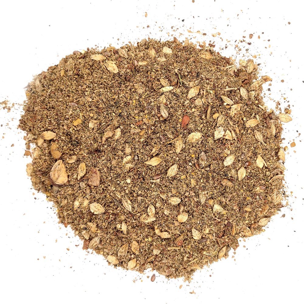 Состав: ячмень (40%), кукуруза (14,5%), жмых льняной (12,1%), отруби пшеничные (11,5%), яблочный жом (10%), семена льна, подсолнечное масло, карбонат кальция, семена пажитника, хлорид натрия, кизельгур, стевия.